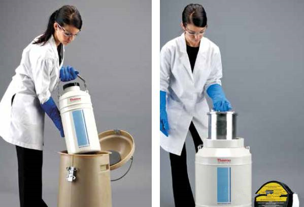 液相液氮罐細胞儲存在液氮液面以下,氣相液氮罐液氮在罐體外壁,里面是氣相,細胞儲存在氣相里。從外觀上看的話,氣相液氮罐上有壓力表和一些閥門。液相液氮罐細胞儲存在液面下,溫度為-196度,氣相的比他略高,約為-190度。氣相液氮罐細胞之間交叉污染的可能性較小。